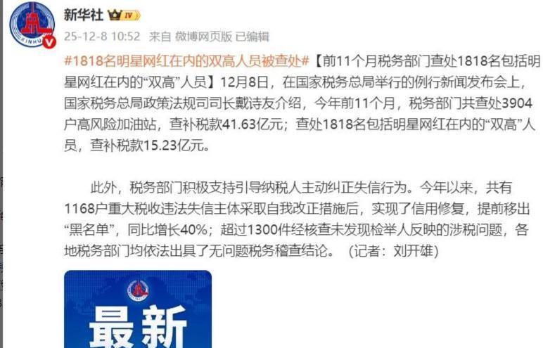 15.23亿元是什么概念按照2024年全国居民人均可支配收入41314元计算这笔税款相当于3.68万名普通人一年的可支配收入总和而1818名被查者平均每人需补税超83万元。泛泛而谈废话角度来说依法纳税是义务但抗拒纳税是本性纳税的服务是依赖于国家法律的强制性与其内在的暴力性的但在这点上在以税立国的美国大统领特朗普也直言只有傻子才会多缴税这就是人性所在。从实际角度而言也就是对普通人的启示而言以网络主播为代表的流量型经济主体作为风云人物在税务问题上一定要小心。非常简单的逻辑那种很挣钱但籍籍无名闷声发大财的税务部门他很难去关注但你吃流量的要关注你太简单了你的粉丝、你的流量、你的数据摆在那里税务局他不需要严谨的分析他只需要从常识的角度思考一下一个几千万粉丝的大网红就报这点儿税他符合常识吗